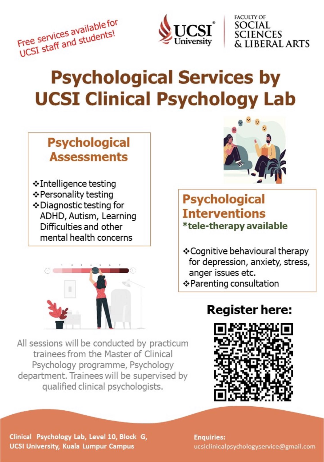 Bella On Twitter Hi Friends Ucsi Clinical Psychology Lab Is Offering Free Psychological Services Including Individual Therapy Psychological Assessment Iq Personality Test Or Diagnose Testing Open For Both Children And Adults Scan The